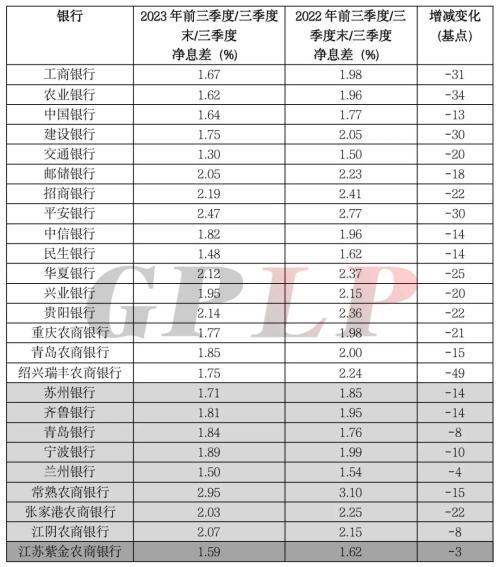 在2023年三季度,42家A股上市银行中一共有25家银行披露了净息差数据。其中,有16家银行披露的是前三季度净息差,8家银行披露的是三季度末净息差,1家银行披露的是三季度净息差,相比去年同期,均有一定幅度下滑。在上述三个数据维度中,一共有8家银行(1家国有行、3家全国股份行、1家城商行、3家农商行)净息差超过2%。在披露前三季度数据的银行中,平安银行以2.47%净息差居首,交通银行以1.30%净息差“垫底”。