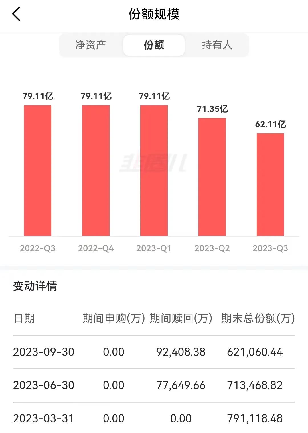 该基金2020年6月17日成立,三年持有期,一直未开放申购,所以一直没有申购数据,2023年二季度以来才有赎回数据。