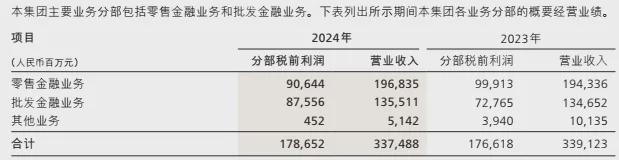 从分部经营业绩看,招商银行2024年零售金融实现营收1968.35亿元,同比增长1.29%,占集团营收的58.32%,同比上升1.01个百分点,但税前利润减少93亿元,同比下降9.28%,占集团税前利润的50.74%,同比下降5.83个百分点,已接近50%的临界点。