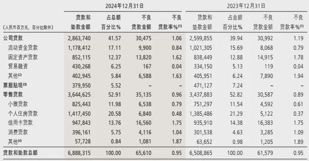值得一提的是,信用卡作为招商银行打造“零售之王”的核心工具,功不可没。据招商银行披露,2024年末短期贷款平均余额25,712.17亿元,利息收入1,112.76亿元,平均收益率4.33%,较中长期贷款平均收益率3.65%高出0.68个百分点,主要系信用卡贷款及消费贷款收益率相对较高且占比较高。