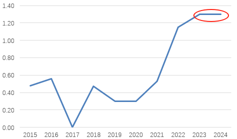 又比如,招商银行在信用卡业务发展中,不仅体现出其在过去数年中的经营韧性,同时也向外释放边际改善的迹象。从信用卡贷款余额来看,该行2024年末信用卡贷款余额9477亿,再创新高;从收入及结构来看,2024年招商银行实现信用卡收入885亿,其中利息收入643.6亿,同比增长1.3%,仍实现正增长;资产质量方面,招商银行信用卡领域不良率为1.75%,环比上年持平,且较2022年1.77%的高点有所下降。