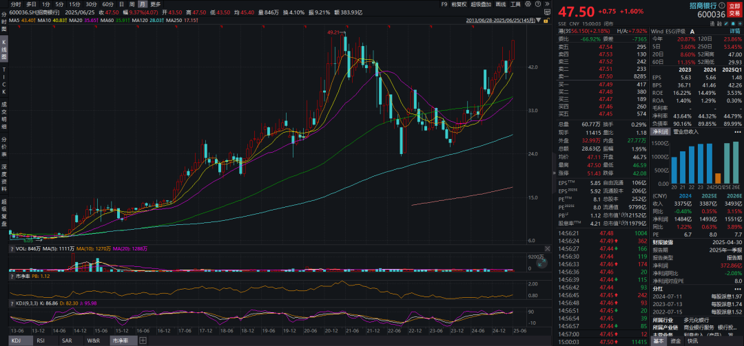 招商银行逐渐走出零售阴霾,股价冲击历史新高