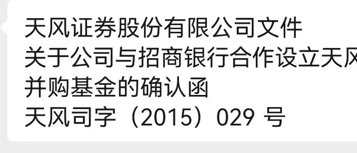 2、天风并购基金规模庞大,没有招商银行参与,仅靠招商财富、天风证券,显然是绝对不可能的。因此,天风并购基金的成立,招商银行起到了关键作用,“居功至伟”。