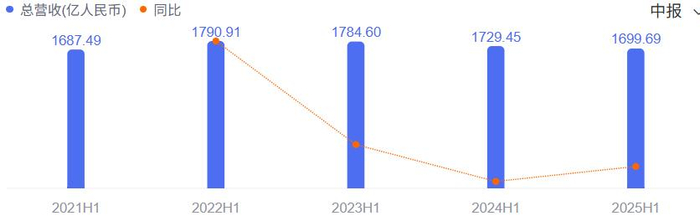 不同于逆势回暖的盈利表现,2025年上半年招商银行的营业收入依旧处于承压状态,收入由2024年上半年的1729.45亿元下滑1.72%至1699.69亿元,且这已是该行连续第三年出现中期收入下降。