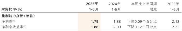 同时,招商银行的计息负债年化平均成本率1.35%,同比下滑0.37个百分点;生息资产年化平均收益率为3.14%,下滑0.46个百分点,直接导致该行2025年上半年的利息收入降至1770.14亿元,降幅约为5.84%。