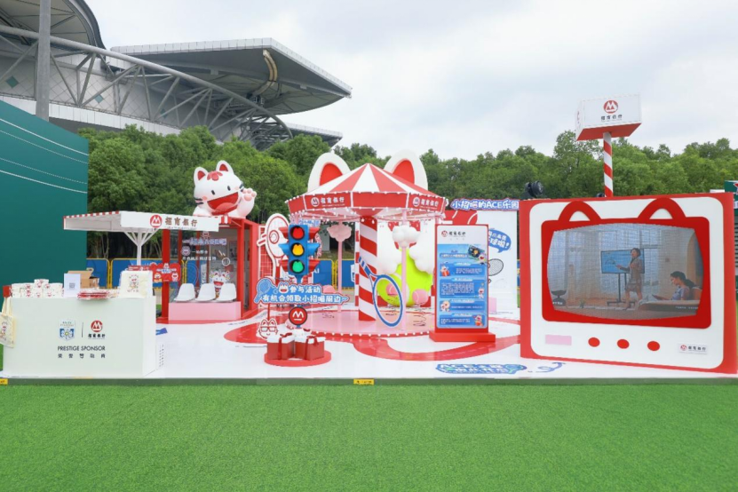 赛事期间,招商银行在旗忠网球中心西广场、品牌天地一楼精心打造室内外品牌展区。展区以“小招喵游乐场”为创意主题,融合旋转木马造型、巨型小招喵玩偶以及网球主题萌趣元素,成为观众打卡的热门点位。现场还配备专业的服务人员,为球迷提供贴心的金融咨询及业务办理服务。观众参与扫码签到等互动,还可领取小招喵周边礼品,为观赛增添乐趣。