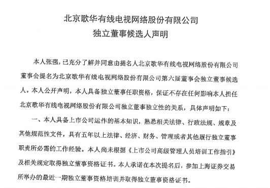 据了解,歌华有线的第六届董事会第四次会议应参与表决董事15人,实际参与表决董事15人。会议由董事长郭章鹏先生主持。且本次会议一致通过关于第六届独立董事议案。如下图,张大钟先生、张强先生同意被提名为公司独立董事候选人。
