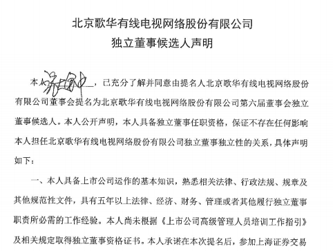 10月29日,北京歌华有线电视网络股份有限公司发布一则公告。公告显示确认将增补两位新董事会独立董事成员。