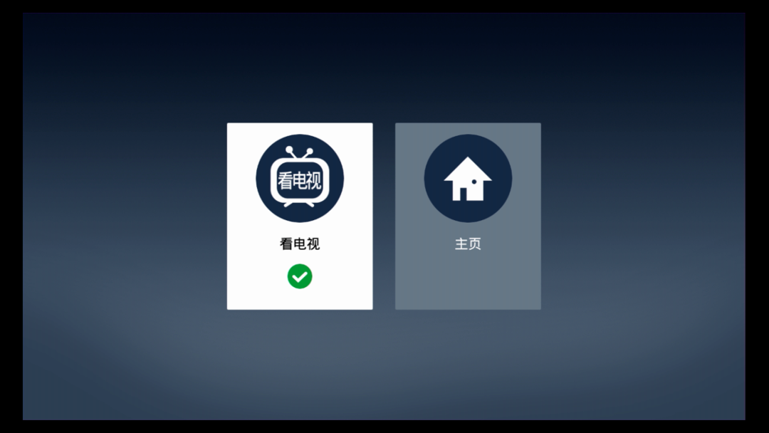 开机默认进入全屏直播模式下,开机后在屏幕上方显示半透明主要交互功能导航栏,15秒无操作后自动消隐,不影响用户收看直播,同时可兼顾用户不同收视习惯和差异化使用需求。