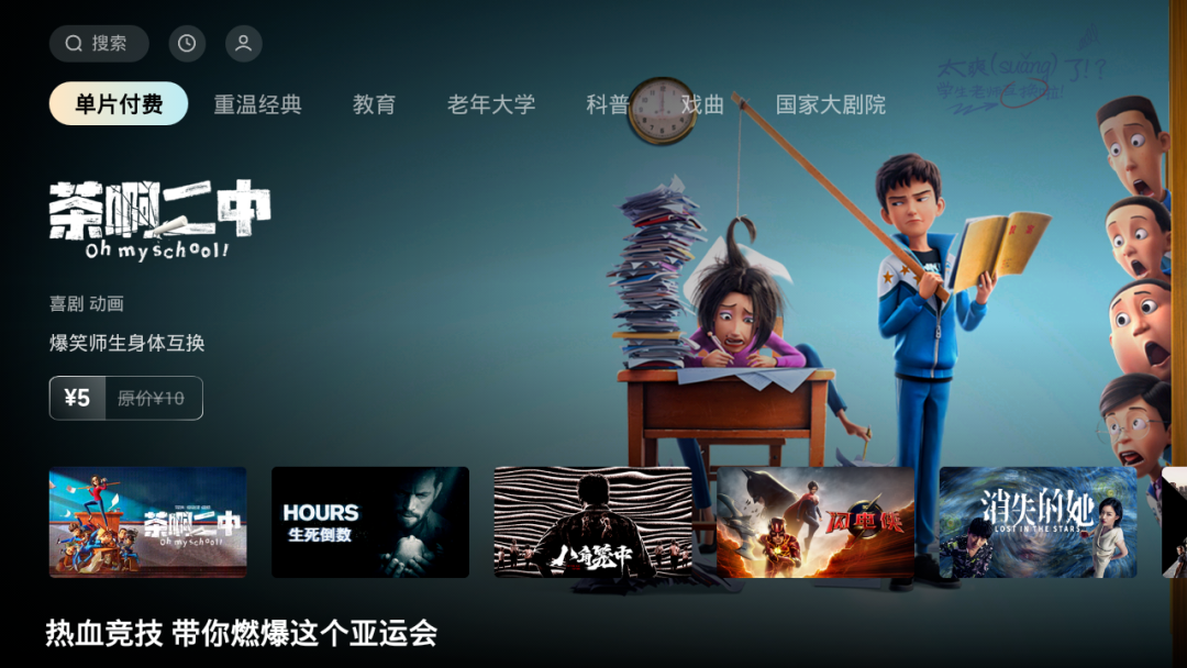首屏首页的内容标有明显的付费与免费标识,透明消费无陷阱。《单片付费专区》,引入国网优质内容,集齐院线大片和热门影片。用户自由点播,在家实现电影自由。
