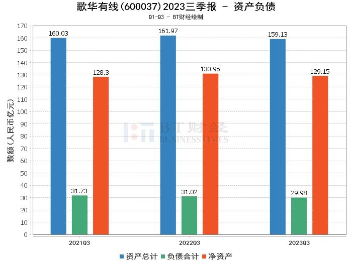 从资产负债方面看,截至2023年三季度末,歌华有线的总资产为159.13亿元,相比上年度末的161.58亿元有所减少。负债合计为29.98亿元,较上年度末的30.56亿元略有下降。公司的净资产为129.15亿元,较上年度末的131.01亿元有所减少。资产负债率为18.84%,较上年度末的18.92%略有下降。这些数据显示,公司的负债规模在控制之中,整体财务状况稳健。