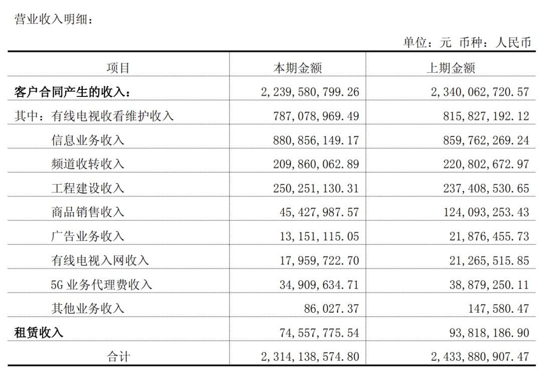过去一年,歌华有线5G业务代理费收入为3490.96万元,上年度为3887.93万元。