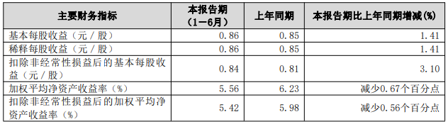 今年上半年,保利地产基本每股收益为0.86元/股,同比增长1.41%;加权平均净资产收益率为5.56%,同比减少0.67个百分点。