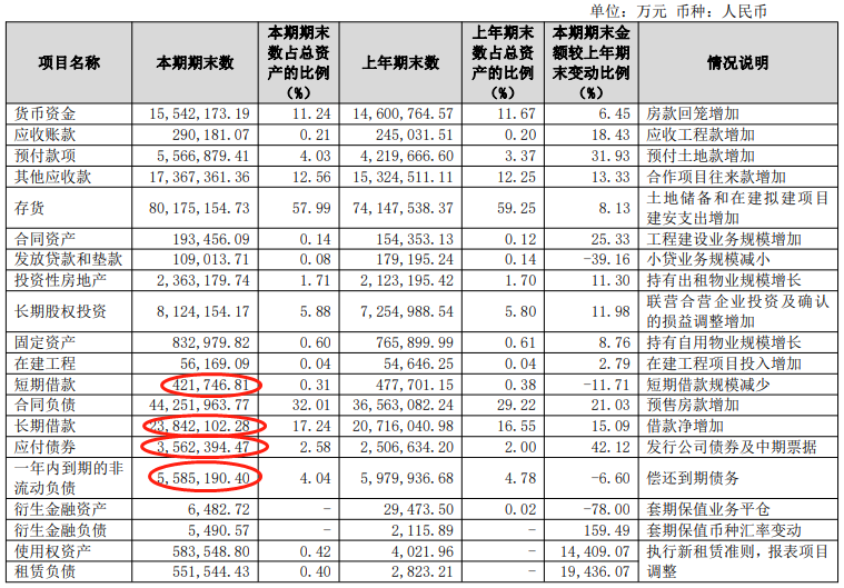 保利地产货币资金不能完全覆盖有息负债。截至上半年末,保利地产货币资金为1554.22亿元,同比增长6.45%;短期借款为42.17亿元,同比减少11.71%;长期借款为2384.21亿元,同比增长15.09%;应付债券为356.24亿元,同比增长42.12%;一年内到期的非流动负债为558.52亿元,同比下降6.60%;有息负债合计3341.14亿元。