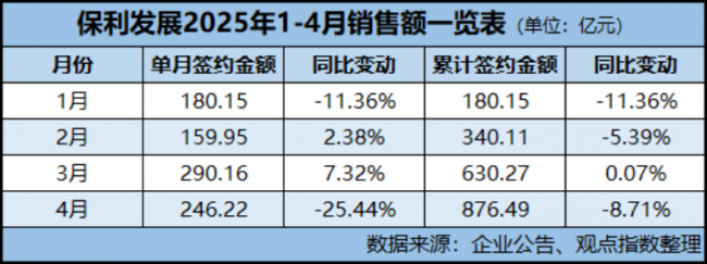 根据观点指数《2025年1-4月房地产企业销售表现》研究成果,保利发展1-4月分别以全口径销售金额876亿元、权益销售金额690亿元稳坐两榜之首。