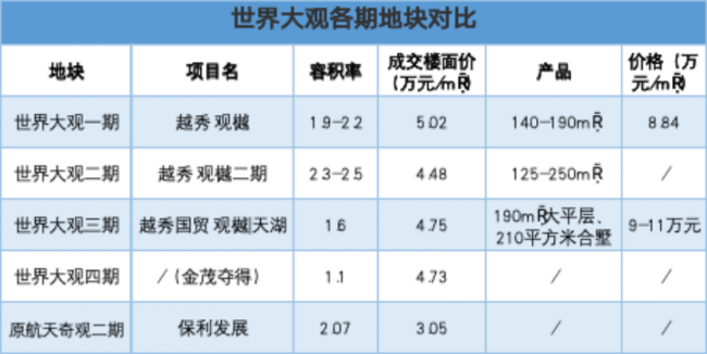 目前,该地块所处的世界大观板块已形成成熟的改善型居住氛围,均以低密度板式大平层产品为主。