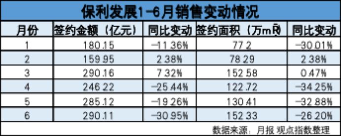 7月3日晚,保利发展发布了2026年6月销售简报,单月实现签约面积152.33万平方米,同比减少26.20%;签约金额290.11亿元,同比减少30.95%。