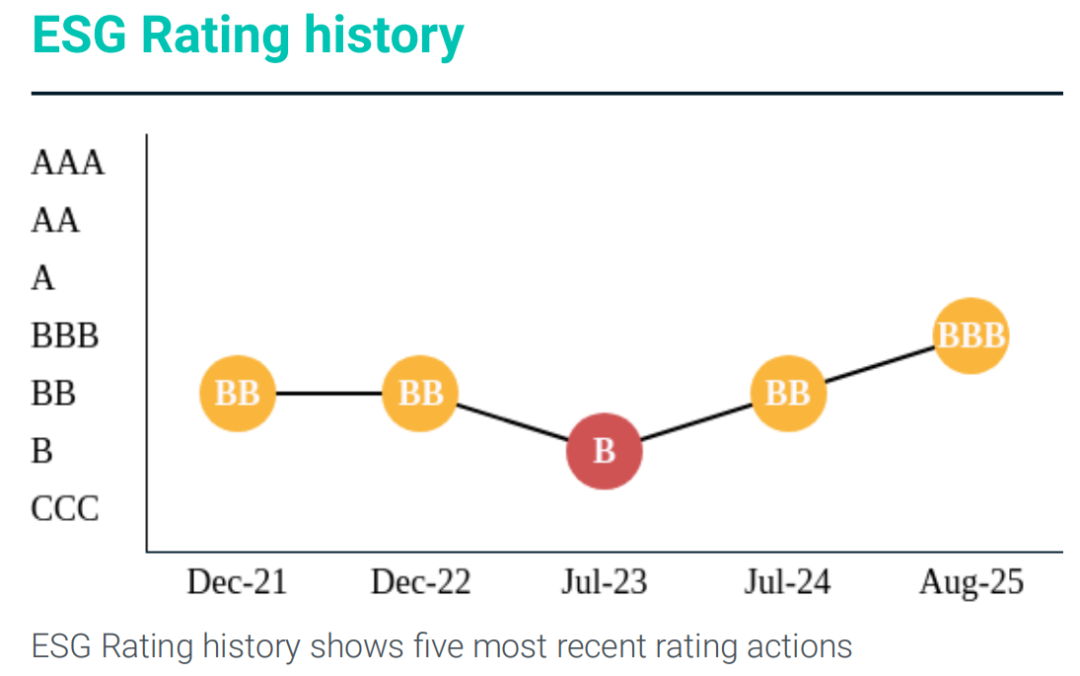 MSCI ESG评级是全球投资界广泛认可的重要参考依据,基于企业在环境(E)、社会(S)及治理(G)三大维度的公开表现进行行业重点议题的针对性评估。