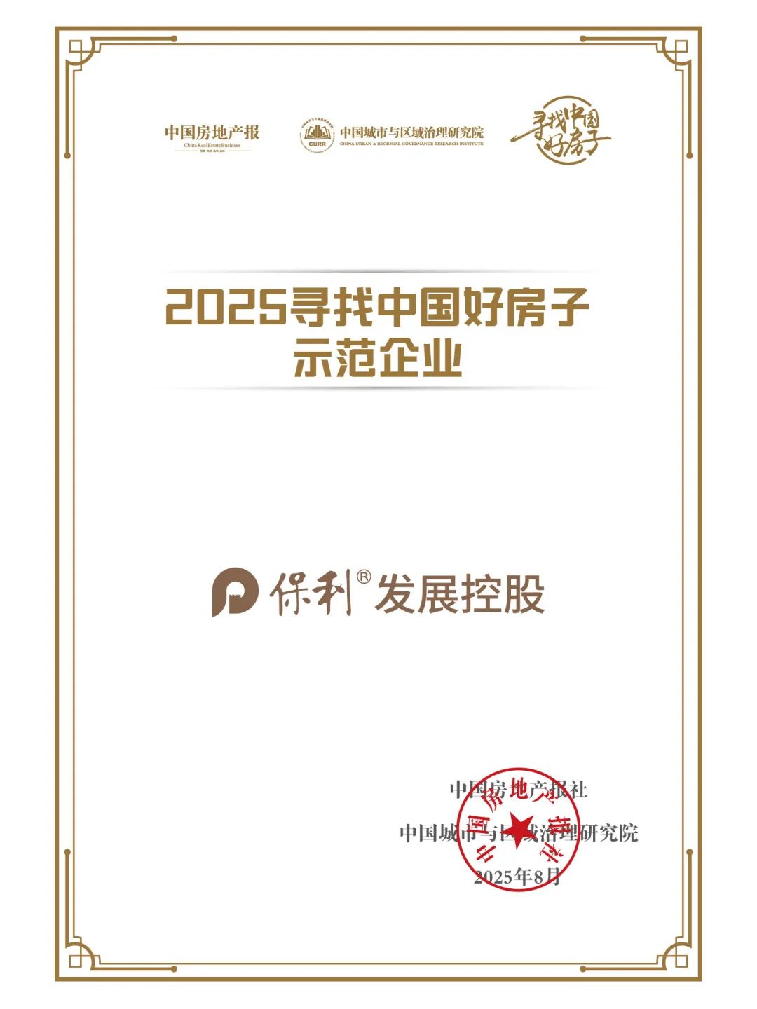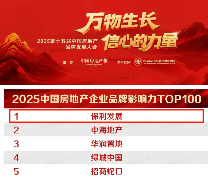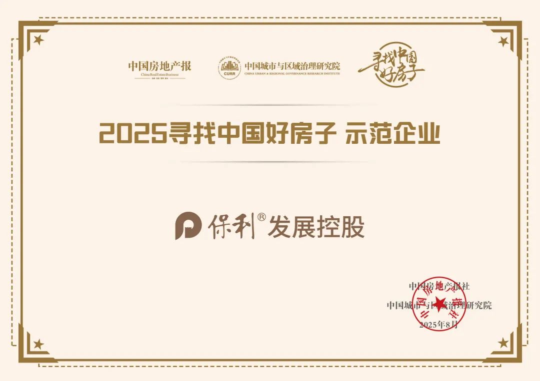 保利发展控股获评“2025寻找中国好房子示范企业”,位居“2025中国房地产品牌影响力百强企业”榜首