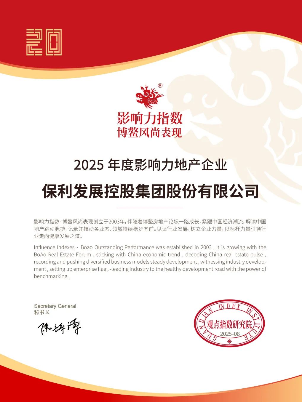 获评“2025中国房地产品牌影响力百强企业”