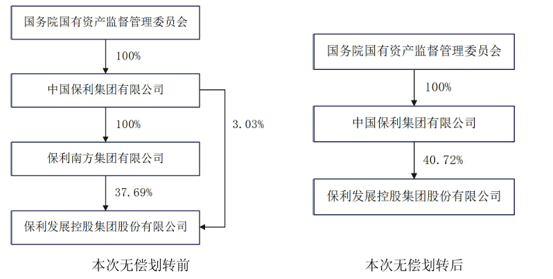 此次股份划转完成后,保利南方将不再持有保利发展股份,保利集团对保利发展的直接持股比例将从3.03%跃升至40.72%。