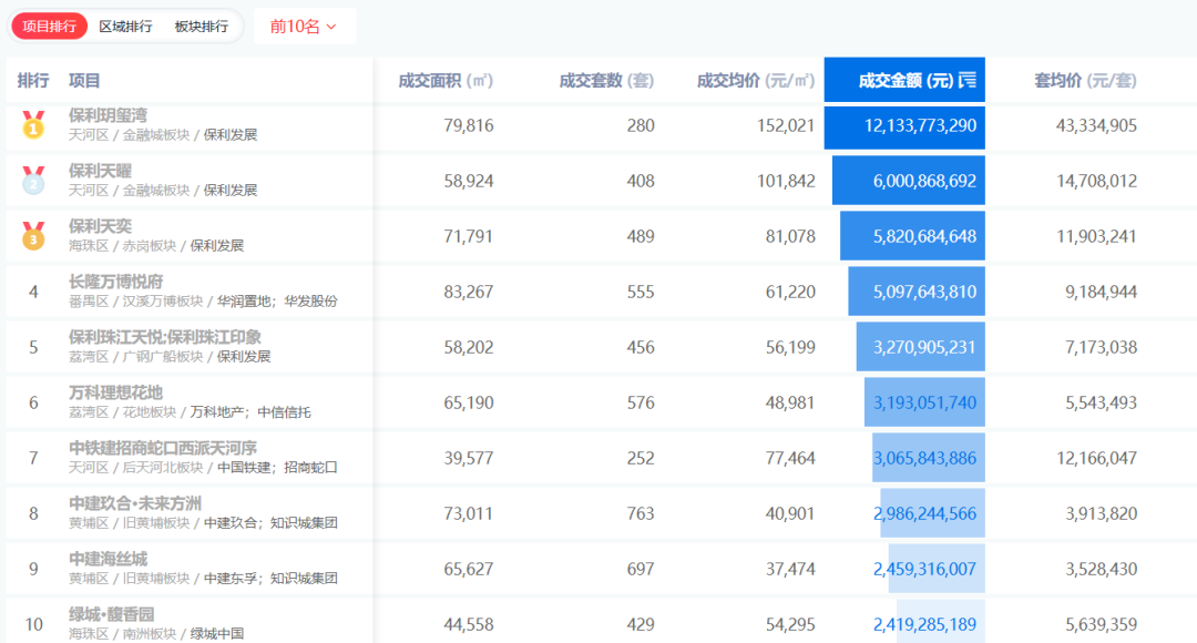 成交金额榜,前三被保利发展“包圆”