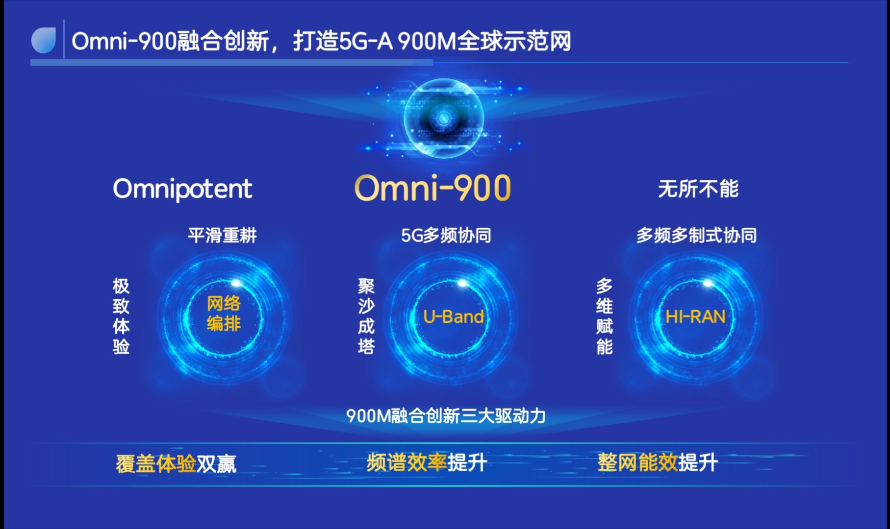 在发布会上,中国联通与中兴通讯从体验、效率、能效三个维度联合发布了900MHz网络系列化创新技术和成果。在体验维度,通过时频双域智能网络编排,提升用户体验。同时结合动态成簇、时域M子帧、频域CRS动态muting等技术,助力用户速率综合提升30%左右。在效率维度,以用户为中心实现频谱协同,提升频谱利用效率。同时针对5G-A多频段、离散化、开销高等问题,推出U-Band(User-centric Band Aggregation)方案,基于频谱池化的智聚智优,发挥全频段优势实现用户体验和网络容量最优,实现频谱效率综合提升20%。在能效维度,通过节能创新助力全频多制式演进,提升整网能效。从器件、设备、站点、网络四级维度,结合智能节能技术,依托基础覆盖层,助力容量层节能,达到网络能效综合提升30%。