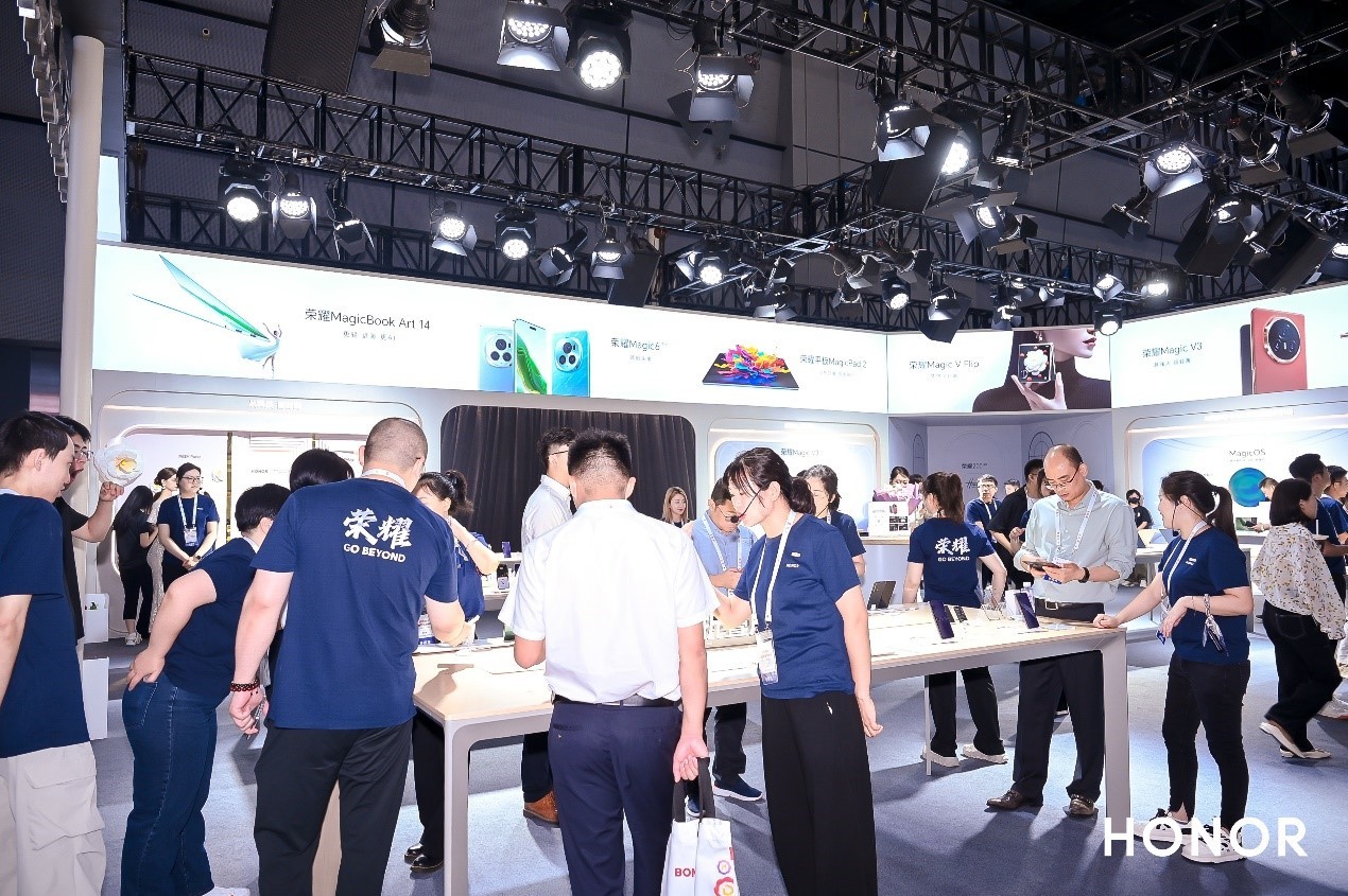 据了解,荣耀在此次大会的银厅 A-06投入了面积超过200㎡的展厅,包含了时尚区、荣耀Magic V3技术区、Magic OS区、雅顾体验区、HONOR Talents区等五个专区。