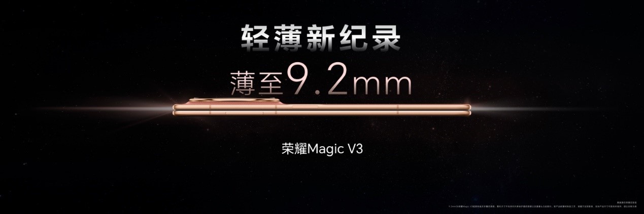 作为真正实现轻薄强大合体的折叠旗舰,越强大越轻薄的荣耀Magic V3是荣耀又一科技创新里程碑之作,是极致科技的最尖端展现。荣耀Magic V3跨界创新带来行业首个轻薄折叠屏解决方案荣耀鲁班架构,采用19种创新材料及114种创新微型结构,折叠态机身减薄至9.2mm,继12个月前荣耀V2首次实现折叠屏9.9mm的轻薄纪录后,再次刷新折叠屏轻薄纪录,一次性解决折叠屏做薄做强难题,重构折叠屏轻薄体验及交互体验,引领折叠屏品类进入新的创新周期。
