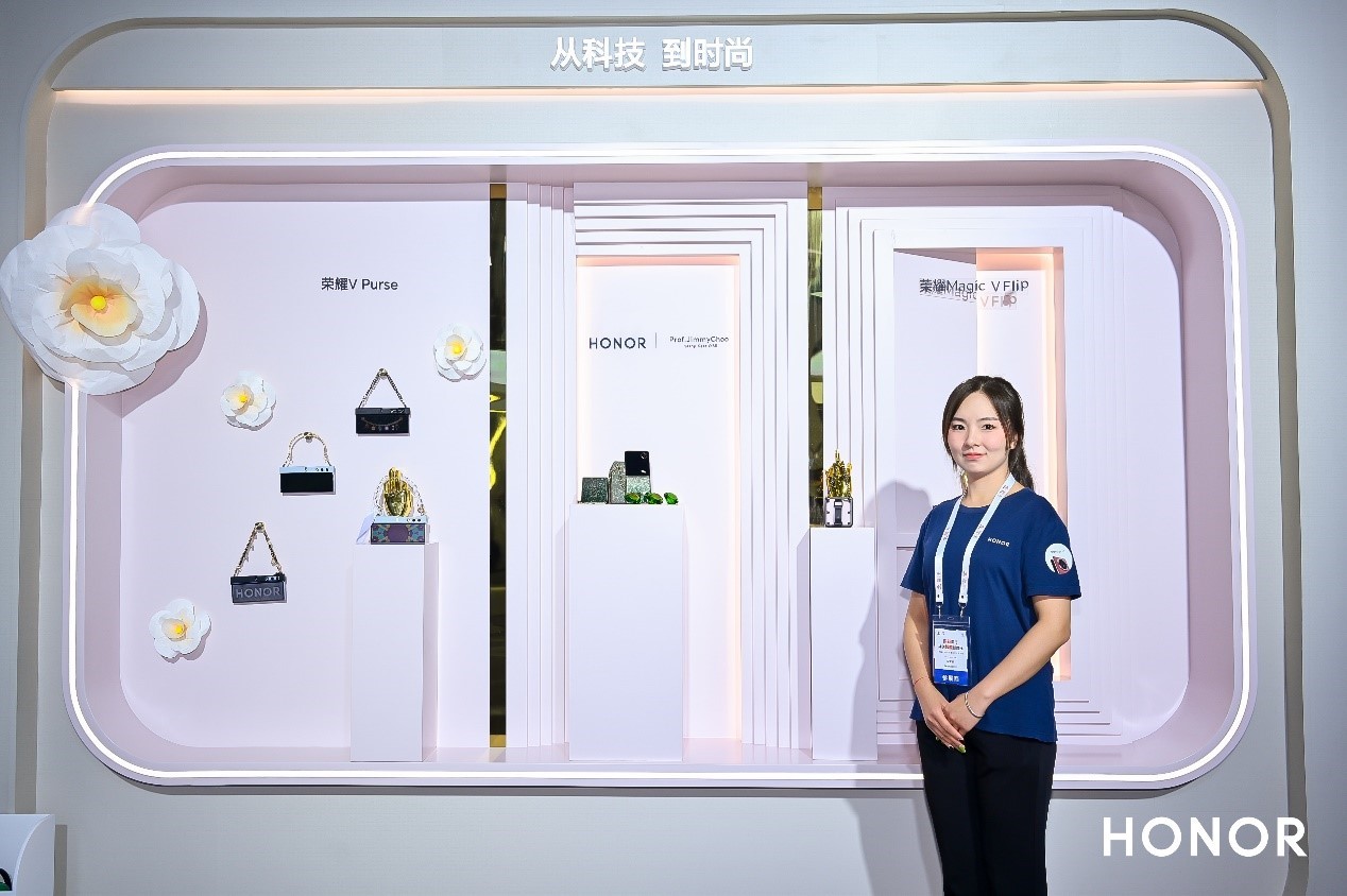 在时尚区,荣耀展出了旗下首款小折叠手机荣耀Magic V Flip。荣耀Magic V Flip颠覆行业传统设计,以开创性的超大竖折外屏带来丰富新潮的人机交互体验,打造年轻人的梦想小巨幕;全方位打破小折叠技术壁垒,将时尚与科技完美融合,刷新消费者对小折叠手机使用体验不佳的价值定义。