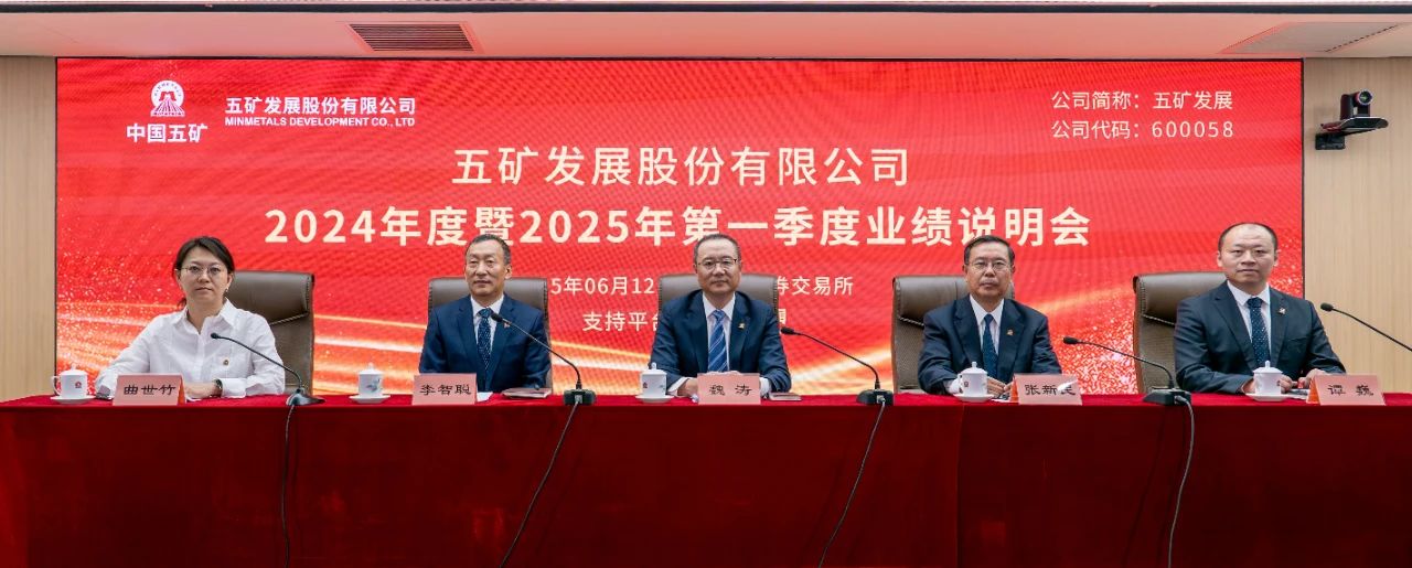 6月12日上午,五矿发展通过视频结合网络文字互动方式召开2024年度暨2025年第一季度业绩说明会。公司董事长、党委书记魏涛,独立董事张新民,总经理、党委副书记李智聪,财务总监、党委委员谭巍,董事会秘书、总法律顾问曲世竹出席说明会,并与广大投资者进行了深入交流,真诚回应市场关切。
