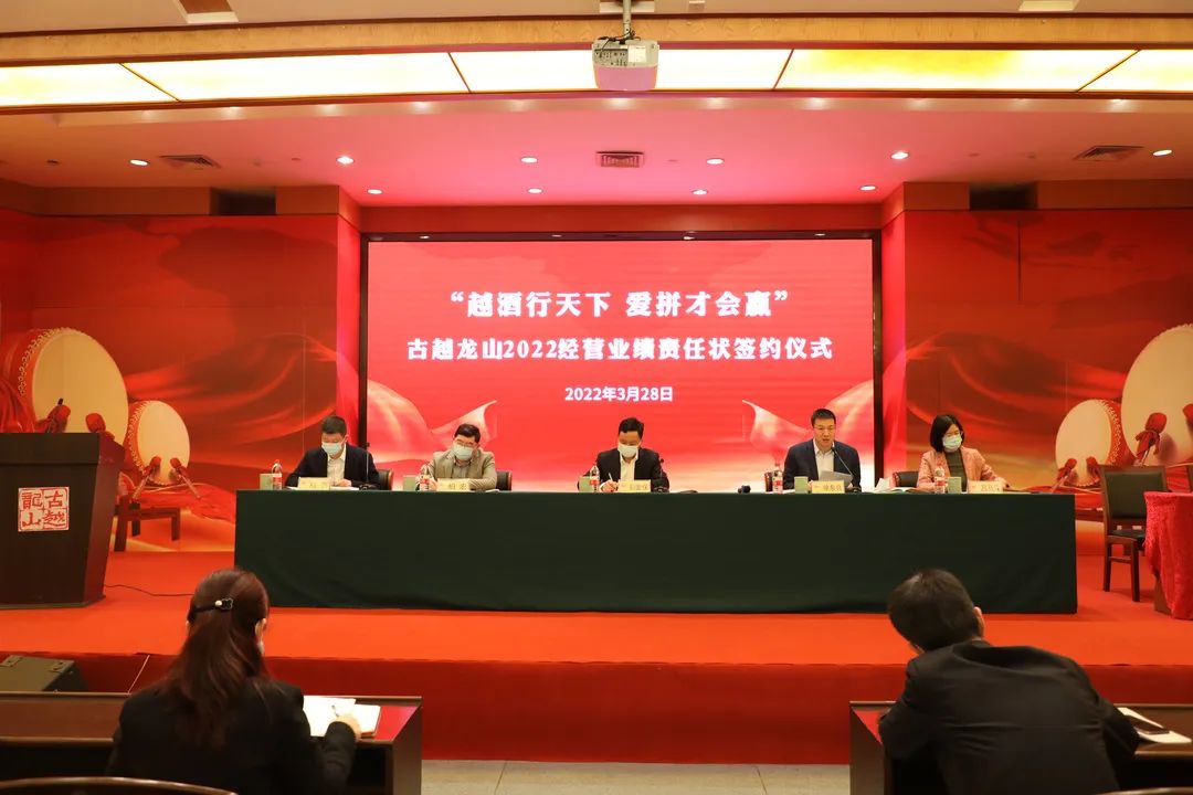 3月28日,古越龙山2022年经营业绩责任状签约仪式举行,会议以“越酒行天下爱拼才会赢”为主题,分解落实经营业绩指标,部署2022年销售重点工作。会议号召销售线统一思想,明确目标,鼓足干劲,围绕“四跑”重点,发扬“四千”精神,奋发有为,为全面完成2022年目标任务,助推“越酒再行天下”而不懈努力!