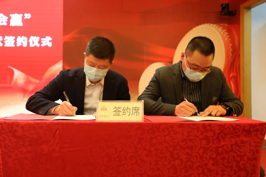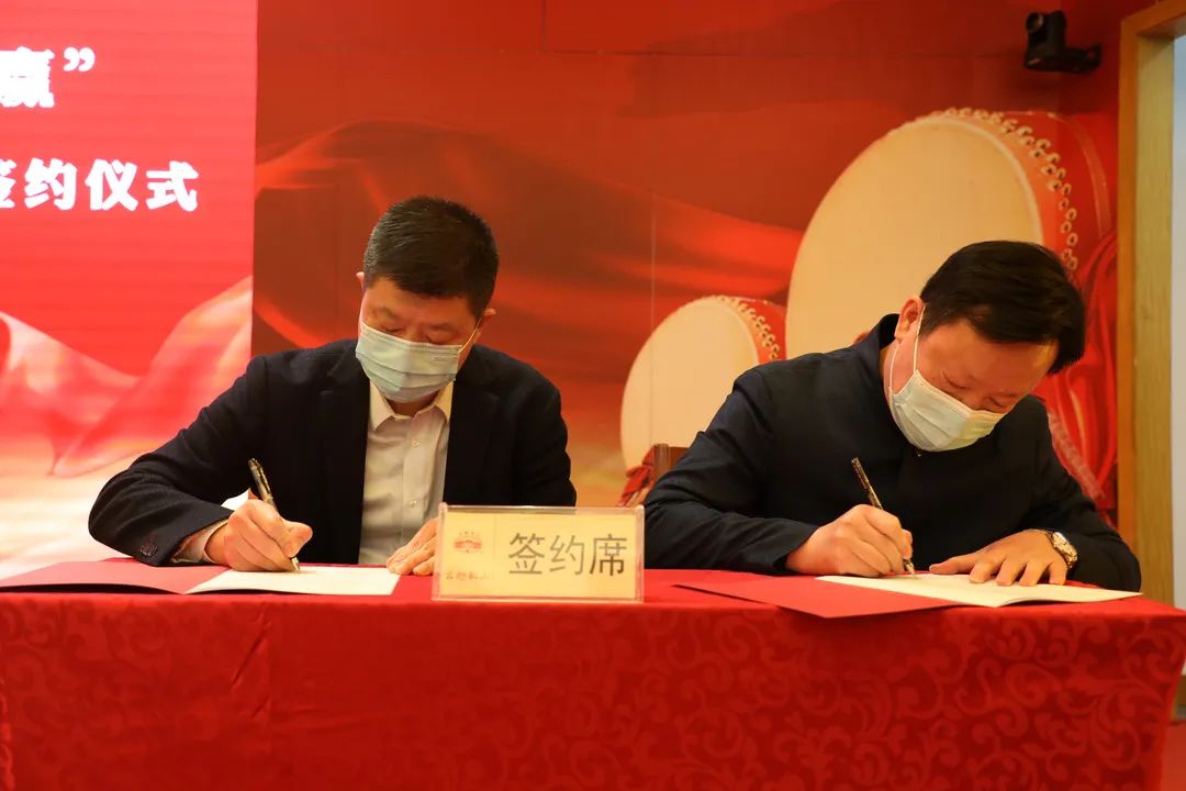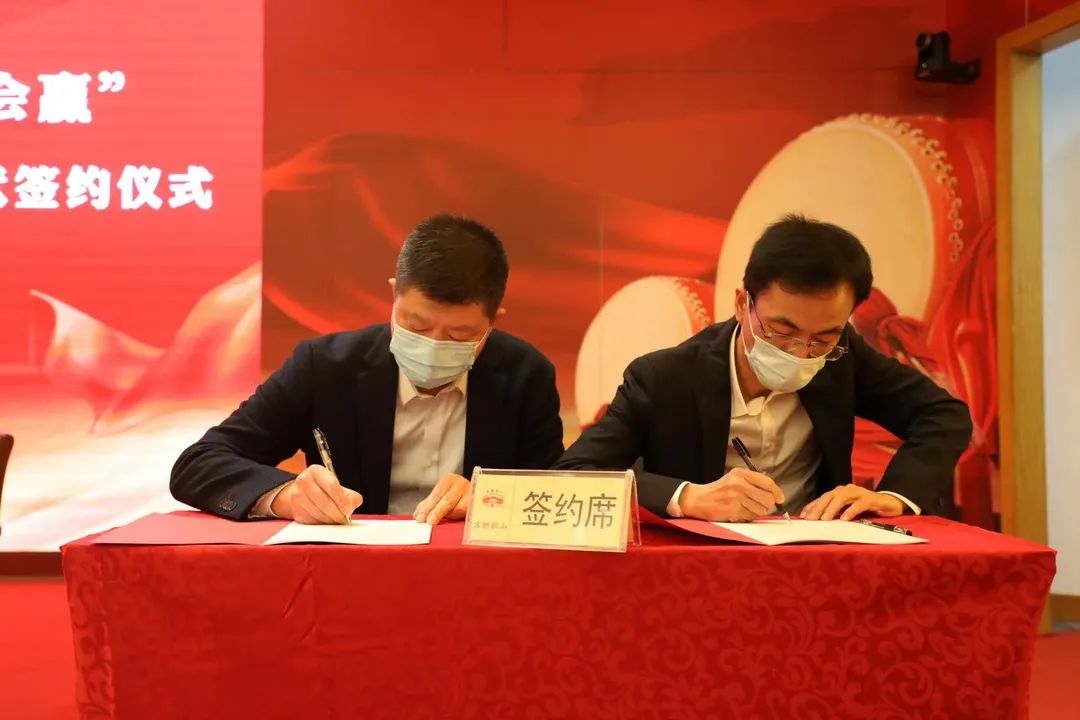 ▲股份公司总经理徐东良与销售公司、高端酒事业部签约