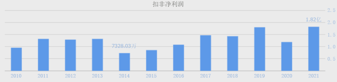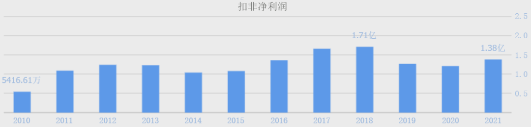 会稽山是国内黄酒市场老二,它的主业利润在2018年之后就再也没有起来过,2018年扣非净利润达到1.71亿,到2021年扣非净利润才1.38亿,较2018年下滑了20%。