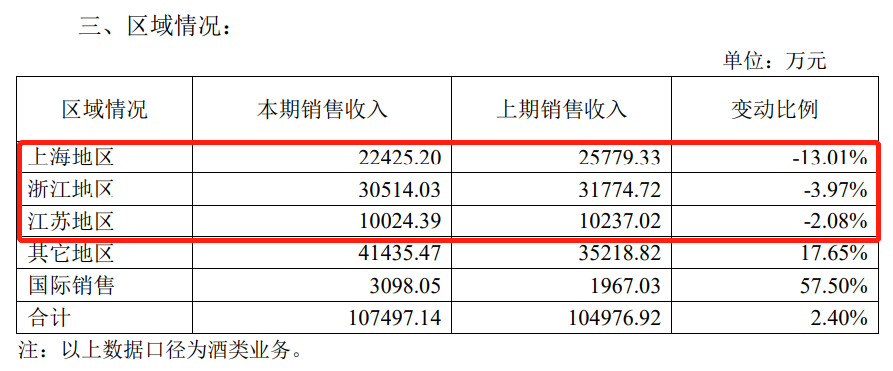 古越龙山三季报显示,今年1-9月中高档酒销售收入7.69亿、同比增长3.05%,普通酒销售收入3.05亿、同比增长0.8%,产品整体营收10.74亿、同比增长2.4%。其中直销渠道销售下滑4.23%,收入来源最大的批发渠道增长3.02%,江浙地区销售全面下滑。前三季度实现归母净利润1.3亿、同比增长2.31%。今年第三季度营收3.37亿、同比微增0.75%,实现归母净利润4058.89万、同比增长2.97%,实现扣非净利润3551.16万、同比下滑9.87%。