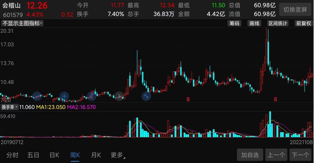 因为控股股东重整的事情,会稽山二级市场股价也出现大幅波动。