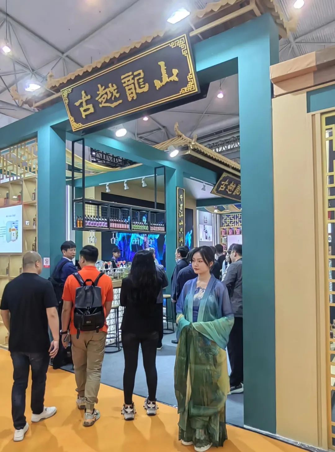 古越龙山区两侧是文创和果酒公司展陈布置,文创产品体现夏商周+兔年生肖酒元素,凸显文化创意品牌,增加参与和体验,果酒系列主要体现青梅煮酒论英雄,增加调酒师调酒互动环节,吸引了众多时尚、年轻人品酒互动。