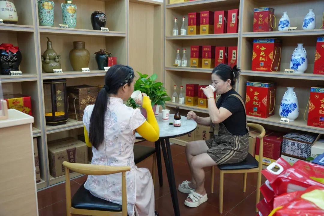 不止店内海报、陈设展示了黄酒文化,还有店员热情地向消费者介绍黄酒深厚的历史文化底蕴。在品鉴区,消费者静静地品尝美酒,更加深刻地理解和感受黄酒文化的独特魅力。