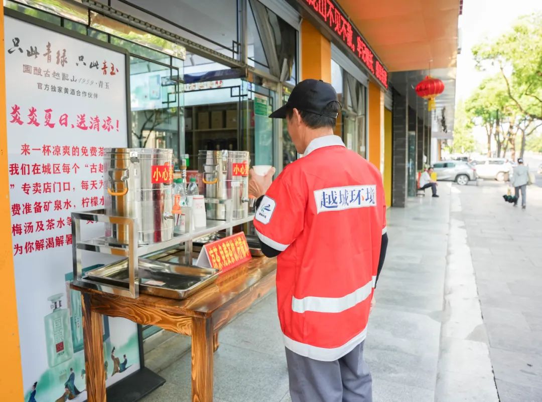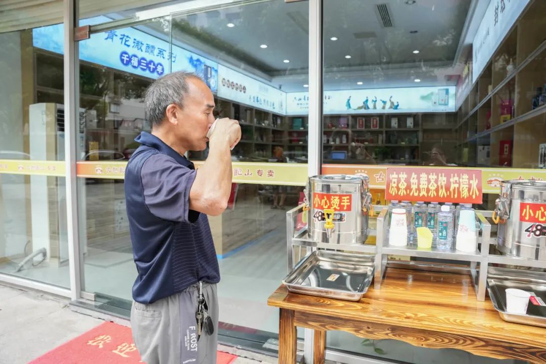 在炎热的夏季,古越龙山直营专卖店外设立的“清凉驿站”成为了城市中一道亮丽的风景线。“清凉驿站”为户外工作者提供免费茶水、酸梅汤、柠檬水等,在这炎炎夏日向广大劳动者送去一份份“清凉”。