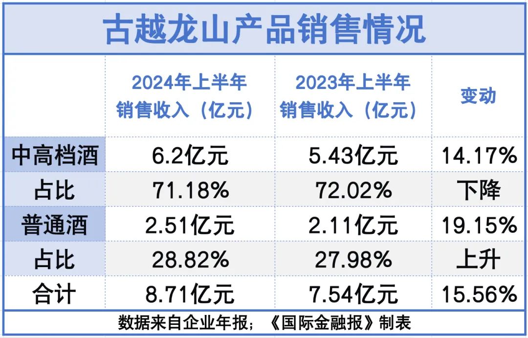 今年上半年,古越龙山的酒产品合计营收8.71亿元,同比增长15.56%。