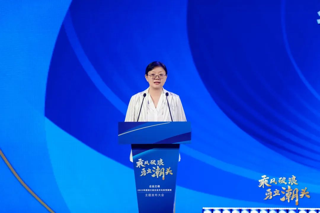 省委宣传部副部长、省文明办主任、省思想政治工作研究会常务副会长俞慧敏出席大会并致辞。俞部长在致辞中充分肯定浙江企业文化建设工作,鼓励广大浙江企业和企业家要始终树立家国情怀,自觉践行以人民为中心的发展思想,以勇敢立潮头、永远立潮头的奋进姿态,全面把握深化改革的重大机遇,奋发有为、开拓进取,为浙江经济发展在推进中国式现代化中再燃激情、再续传奇、再展浙江风采!