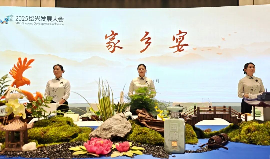 当晚,作为2025绍兴发展大会的重要环节之一,“绍兴之味·家乡宴”温馨举办,在场嘉宾共品 古越龙山 “只此青玉”。一杯杯琥珀色的琼浆,不仅承载着游子对家乡的眷恋,更凝聚着绍兴人共同的文化认同,在推杯换盏间,乡情愈发浓厚,合作愈发紧密。
