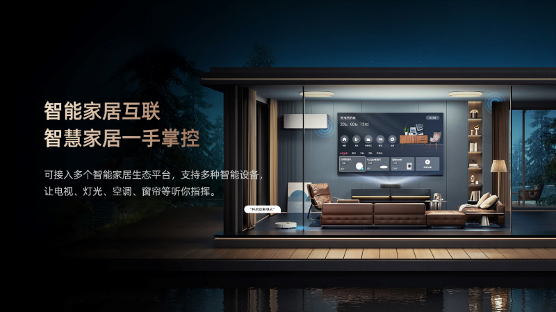 激光电视得益于其大屏护眼、沉浸观影、节能省电的独特优势,以及其优越的家居融合性,近年来深受消费者青睐,成为满足用户打造家庭影院需求的首选。无需出门,在家也能尽享IMAX观影盛宴。海信激光电视的最新产品可接入智能家居生态平台,组成完整的智慧家庭解决方案,与空调、灯光、窗帘等其他智慧家电一起接入智能生态平台后,可设定固定场景,享受空调自动开启、灯光自动调节亮度、窗帘自动关闭、激光电视缓缓亮起的智能家居生活。接入睿住智能系统,结合其AI算法,可按个性化需求联动场景提供主动服务。
