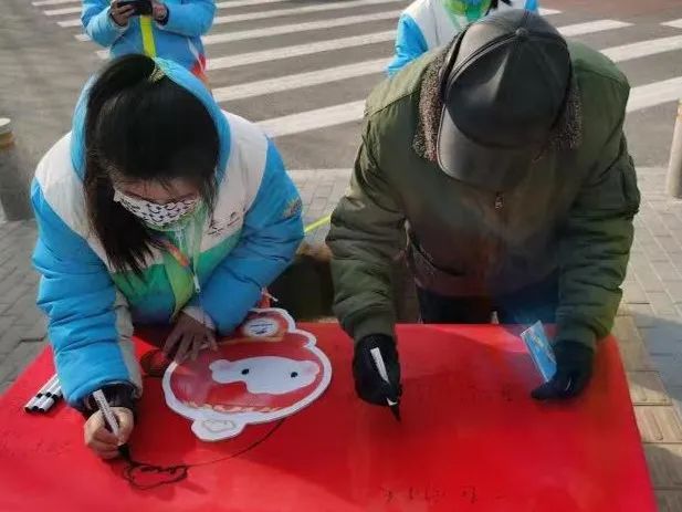 “让我们用手中的画笔,传承奥运精神,让冰墩墩和雪容融‘现身’吧”。来自华润双鹤工业园事业部的志愿者陈荟任,邀请市民朋友们一同在站点特意设置的2022米长卷上,写下美好祝愿,表达对2022年北京冬奥会的祝福和期待。