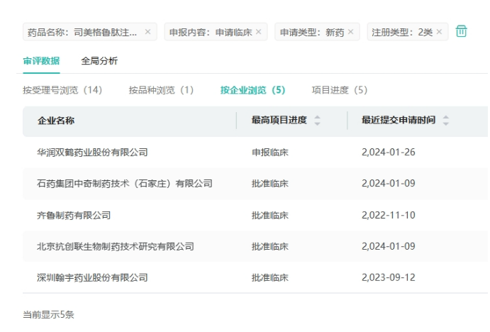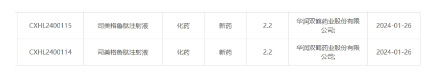 近日,据CDE官网公示,华润双鹤药业递交的司美格鲁肽注射液临床申请已获受理。这是第5家以2.2类申报该品种临床的本土药企。