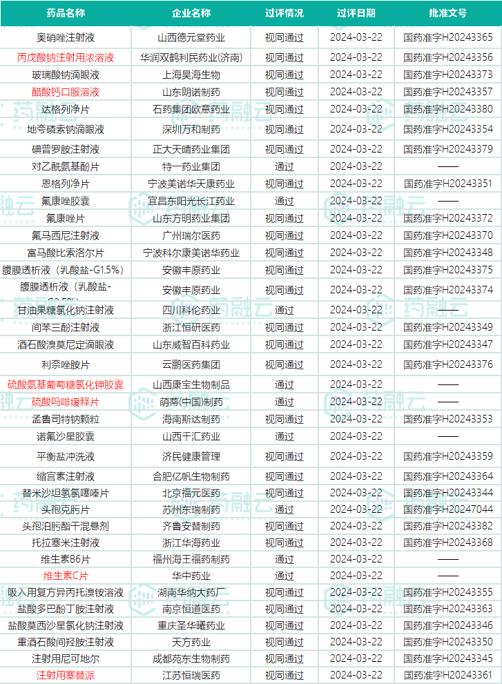 据NMPA官网,2024年3月22日发布的药品批准证明文件送达信息,37个品种(49品规)涉及恒瑞、科伦、华润双鹤等药企。