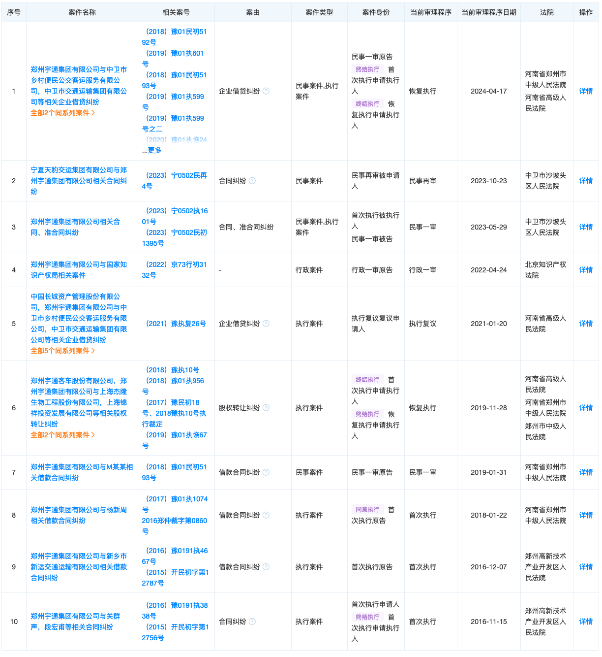 根据统计信息发现,宇通客车股份有限公司2022至2024年涉及案件301起,其中原告267次,被告34次。