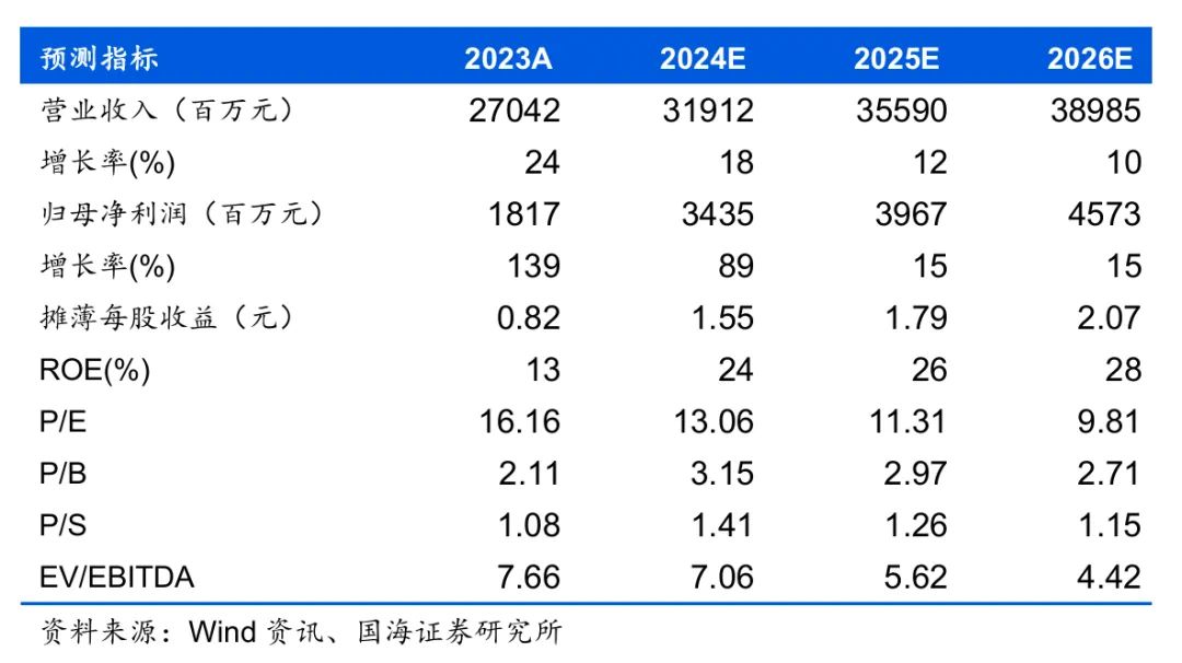 公司是领先的客车企业,未来海外客车行业需求尤其是新能源客车需求仍有望呈现增长态势,同时国内客车销量有望恢复向上,公司销售总量和结构有望持续改善。我们预计公司2024-2026年实现营业收入319.12、355.90、389.85亿元,同比增速为18%、12%、10%;实现归母净利润34.35、39.67、45.73亿元,同比增速89%、15%、15%;EPS为1.55、1.79、2.07元,对应当前股价的PE估值分别为13、11、10倍,维持“增持”评级。