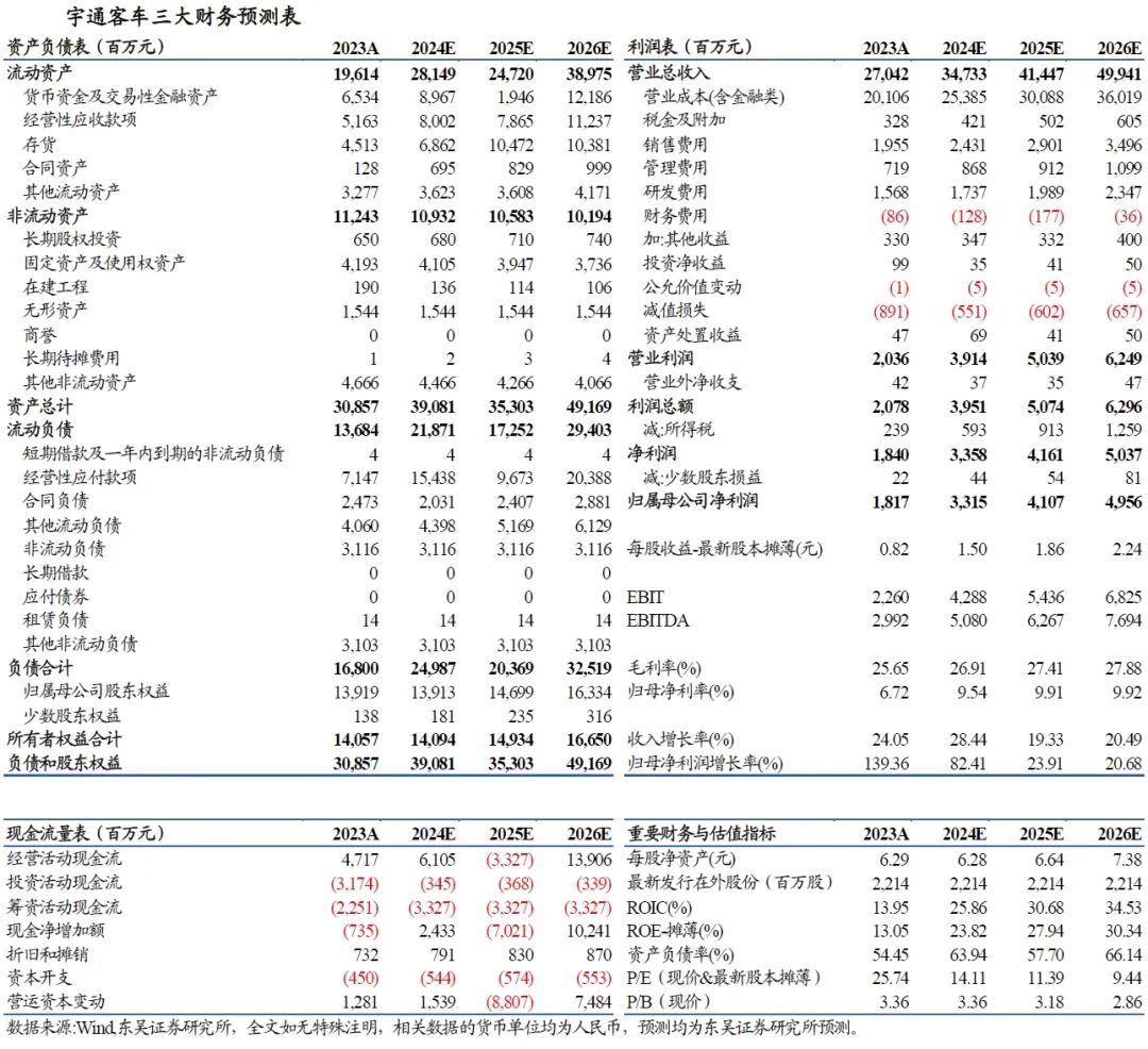1)公司Q2销量同环比高增,出口明显跑赢行业,Q2销量12824辆,同环比+20%/+66%,其中根据中客网,2024年4-5月公司出口大中客3749辆,同环比+40%/+43%,由于环比看出口销量增速弱于国内销量增速,24Q2单车收入环比略有下滑;2)规模效应带动公司盈利中枢上移,2024Q2公司毛利率为26.1%,同环比+2.6pct/+1.3pct,同环比显著提升主要受销量提升带来的规模效应影响;24Q2公司期间费用率为14.85%,同环比-0.1pct/+1.0pct,其中销售费用由于海外渠道拓展持续发力等因素增加较多,管理费用率/研发费用率均录得同环比下降,体现出费用刚性下规模提升带来的利润弹性;3)24Q2公司资产减值损失/信用减值损失分别为1.15/1.10亿元,主要为存货跌价损失和应收账款减值损失,公司实际经营业绩优于表观。