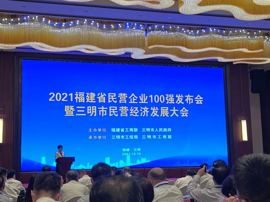 10月15日,由福建省工商联和三明市人民政府联合主办的2021福建省民营企业100强发布会暨三明市民营企业发展大会在三明召开。省政协副主席、省工商联主席王光远出席并致辞,省委统战部副部长、省工商联党组书记李家荣,三明市委书记余红胜、市长李春等出席大会。会上,冠城大通股份有限公司再度荣获“2021福建省民营企业100强”,并入榜首次发布的“2021福建省创新型民营企业100强”。